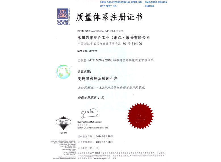 欢迎 光临我们的工厂承田汽车配件工业(浙江)股份有限公司,成立于1989年,技术传承日本滨田,菊田工机。经过多年在台湾研发生产,又于2000年投资中国大陆,成立承田汽车配件工业(浙江)有限公司,总投资额达1200万美元,占地14500平方米,主要产品包括汽车自动变速箱齿轮组件、行星架总成、制动器总成、各类齿轮箱变速齿轮、减速机精密齿轮、电动工具齿轮、电动车差速器总成、油电混合电动车传动轴等齿轮产品。